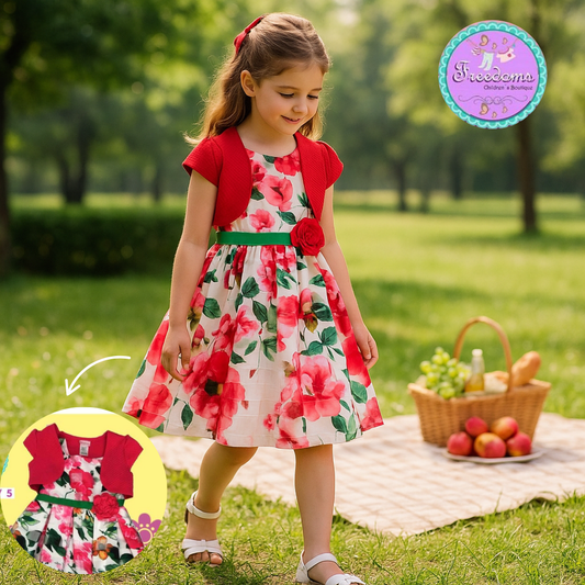 VESTIDO DE NIÑA ESTAMPADO FLORES CON CHAQUETA