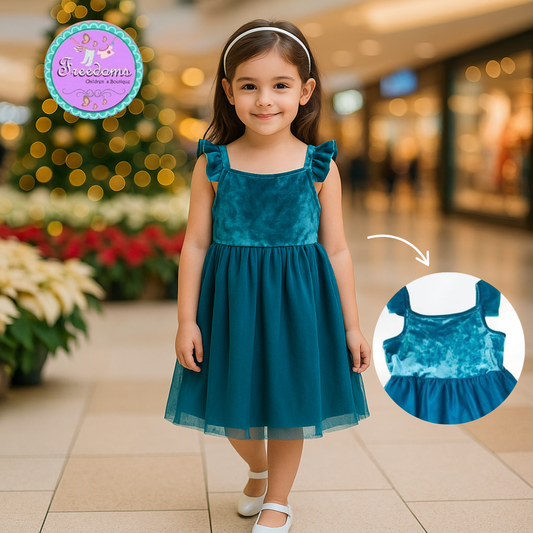 VESTIDO DE NIÑA AZUL TERCIPELO